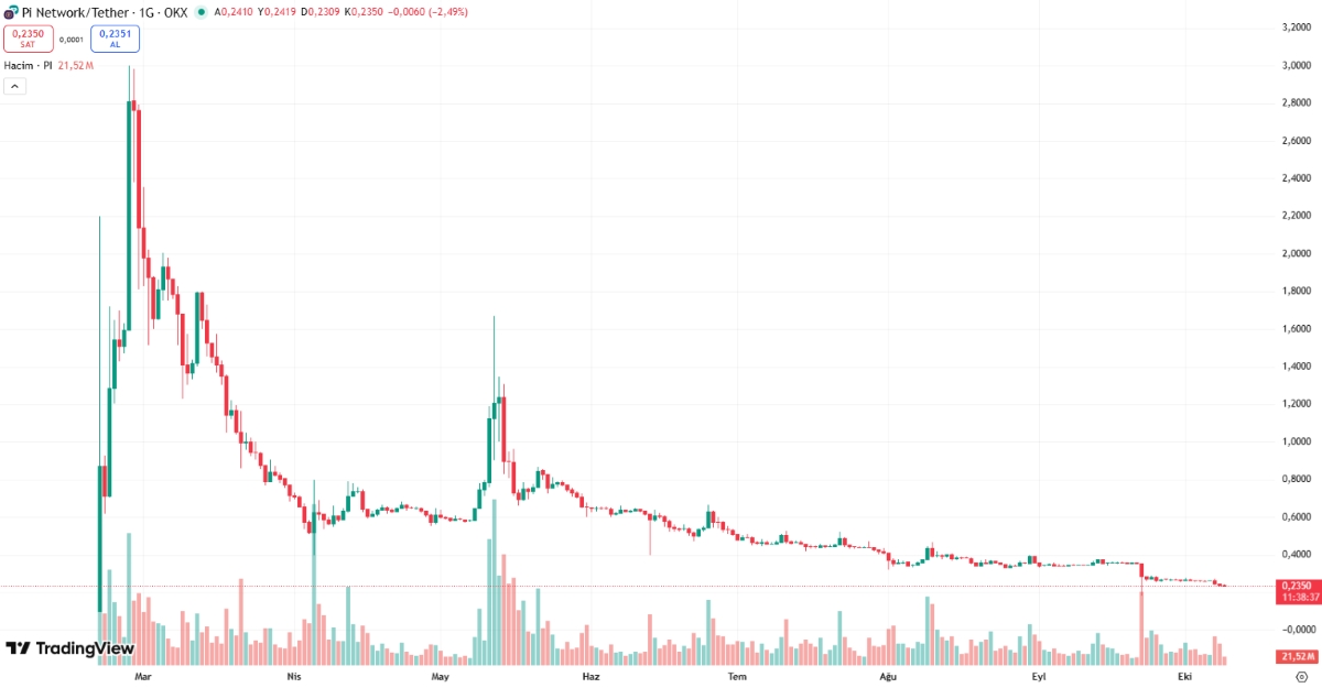 Piyasa verileri durumun aciliyetini gözler önüne seriyor. Pi Coin, listelemenin ardından yaklaşık 3 dolara kadar yükselmişti ancak her toparlanma girişimi başarısız oldu.